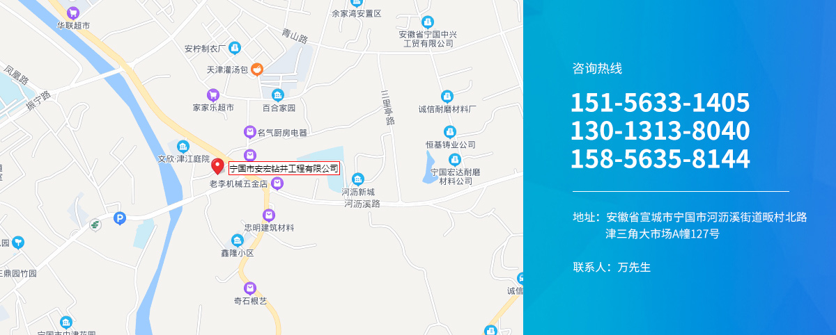 - 寧國市安宏鉆井工程有限公司,前為安徽興旺鉆井工程隊(duì)成立于1998年,公司從事安徽鉆井(宣城打井、寧國打井、蕪湖打井、池州打井、宿州打井、桐城打井、銅陵打井、南陵打井、郎溪打井、廣德打井、績(jī)溪打井、馬鞍山打井等),江蘇鉆井(南京打井、高淳打井...